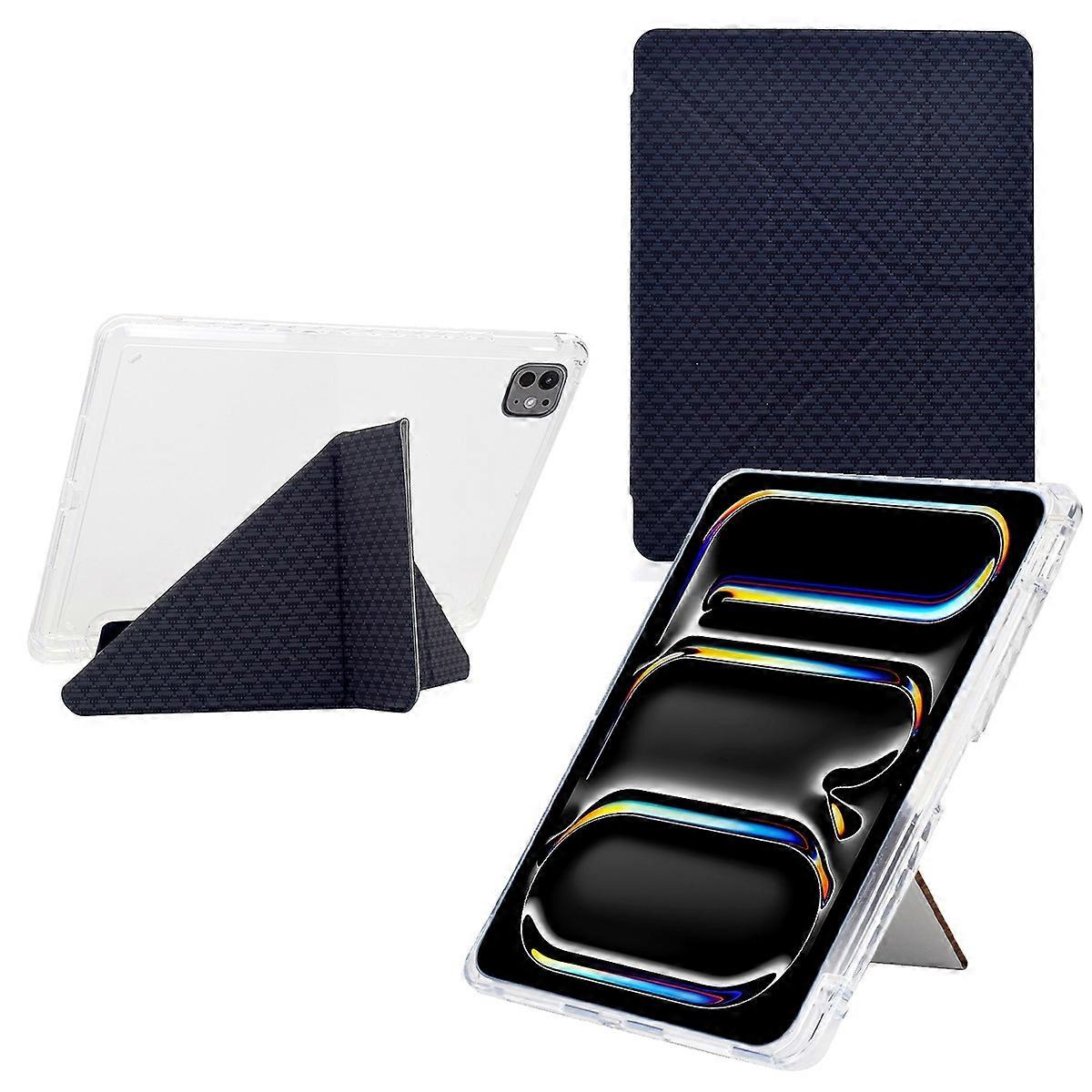 For iPad Pro 11 (2024) Case Y-Fold Stand Pyramid-Patterned Leather + Clear Acrylic Tablet Cover with