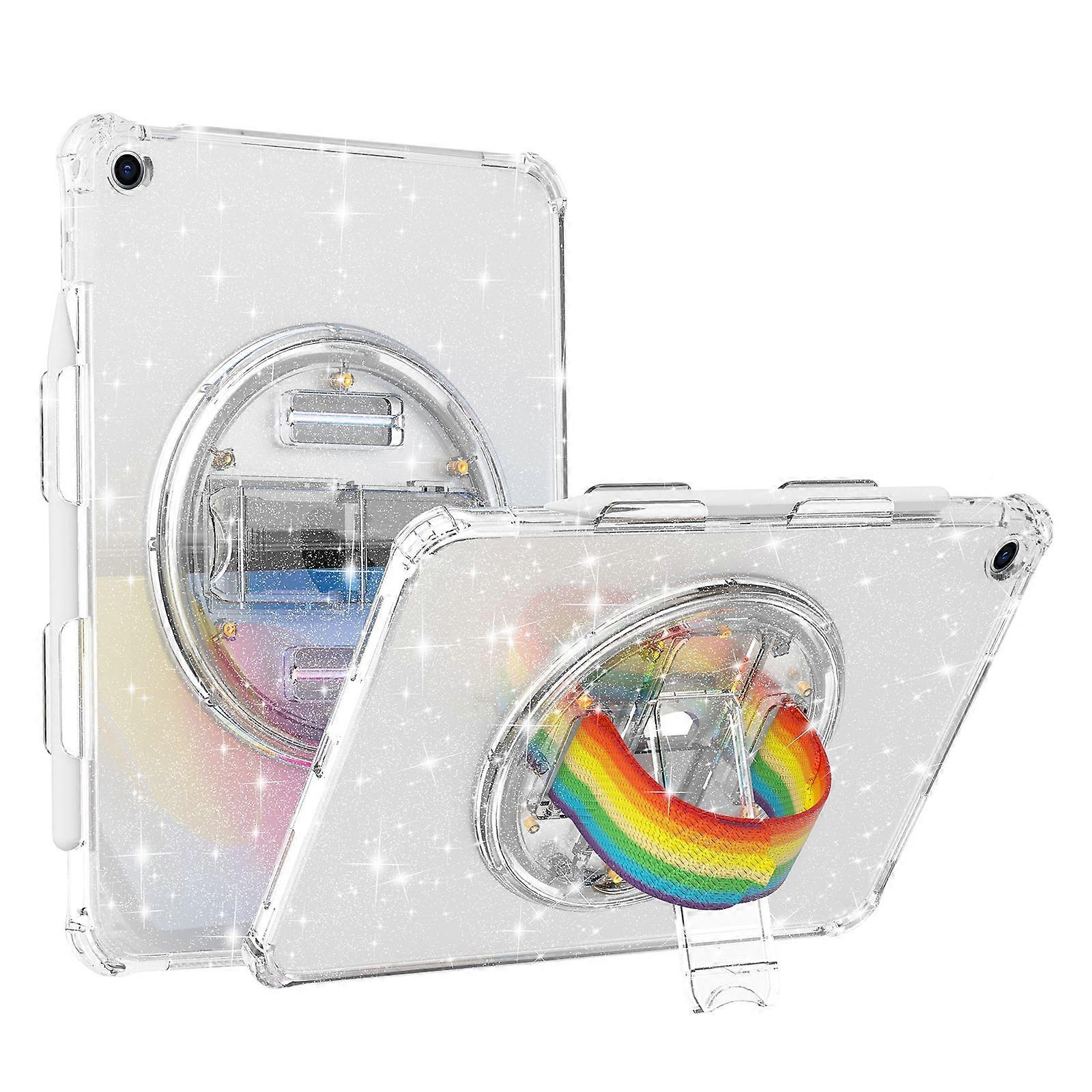 Kickstand Tablet Case for iPad 10.2 (2021)/(2020)/(2019) , Rotary Hand Strap TPU+PC Tablet Cover