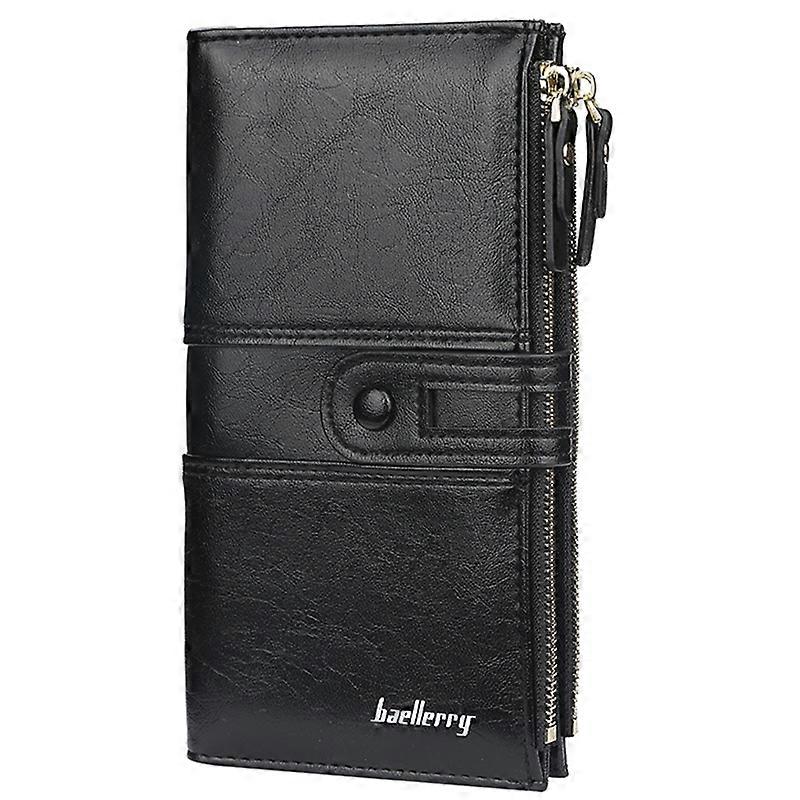 BAELLERRY N1825 PU Leather Long Clutch Bag Wallet Snap Button Zipper Purse Cards Cash Phone Storage