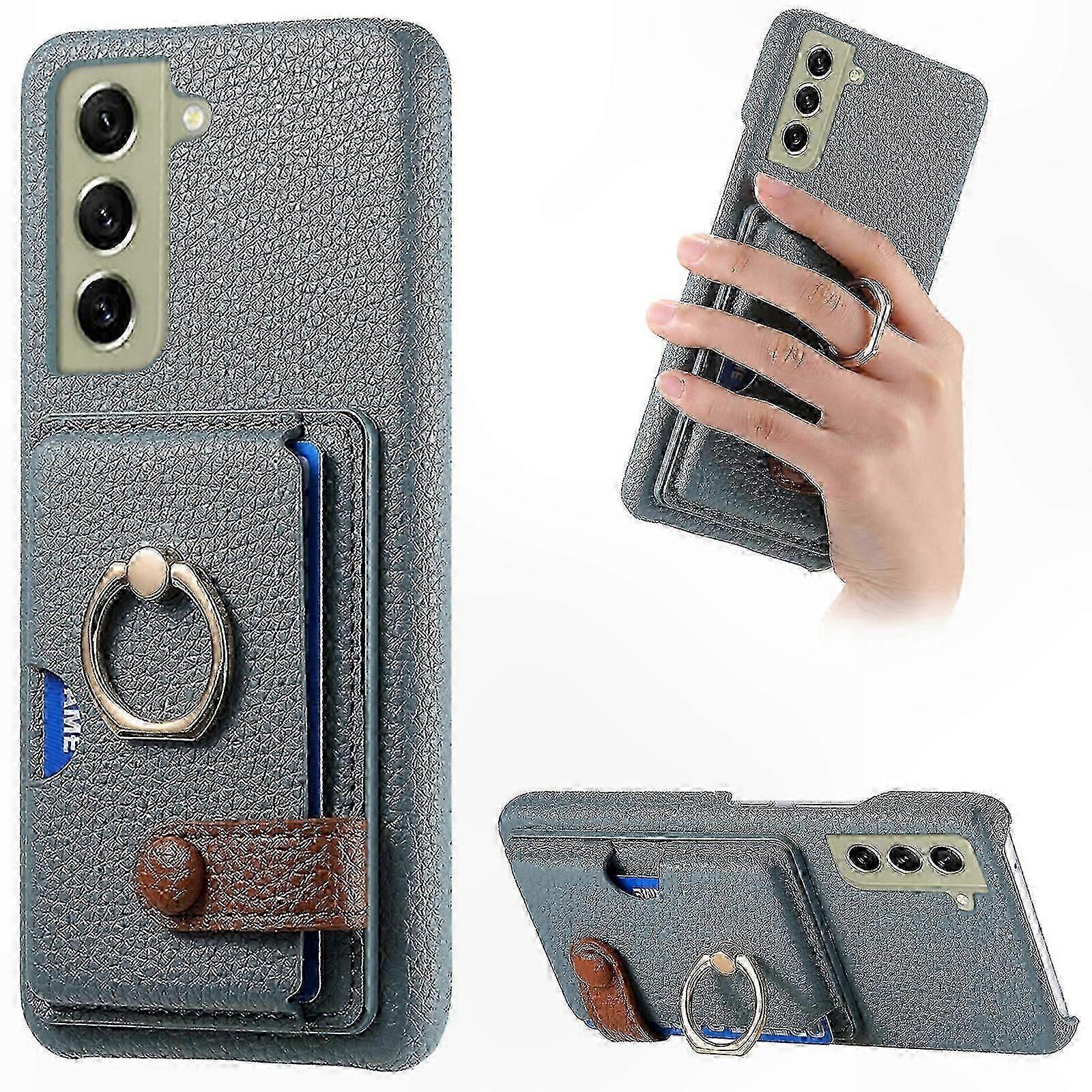 Rotating Ring Stand Case for Galaxy S21 FE 5G, Hybrid Leather PC TPU Protective Cover with Kickstand Functionality