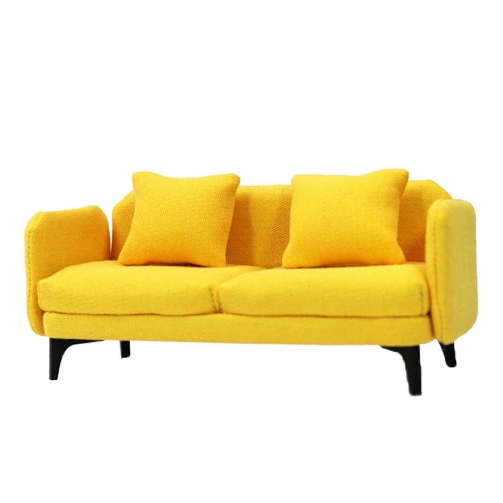 Soft Miniature Couch Realistic Furniture 1/12 Doll House Scene Display Accessories for Model Collector Kids Creative Play Yellow