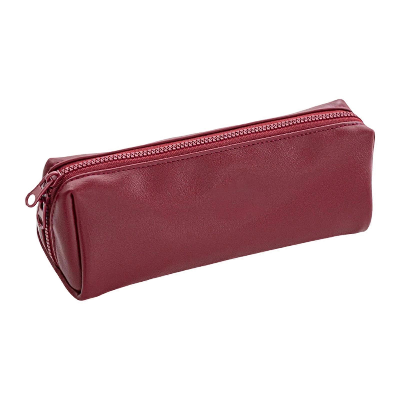 Large Capacity Pencil Case Waterproof PU Leather Pencil Pouches Zippered Closure Pen Organiser For Office School Burgundy