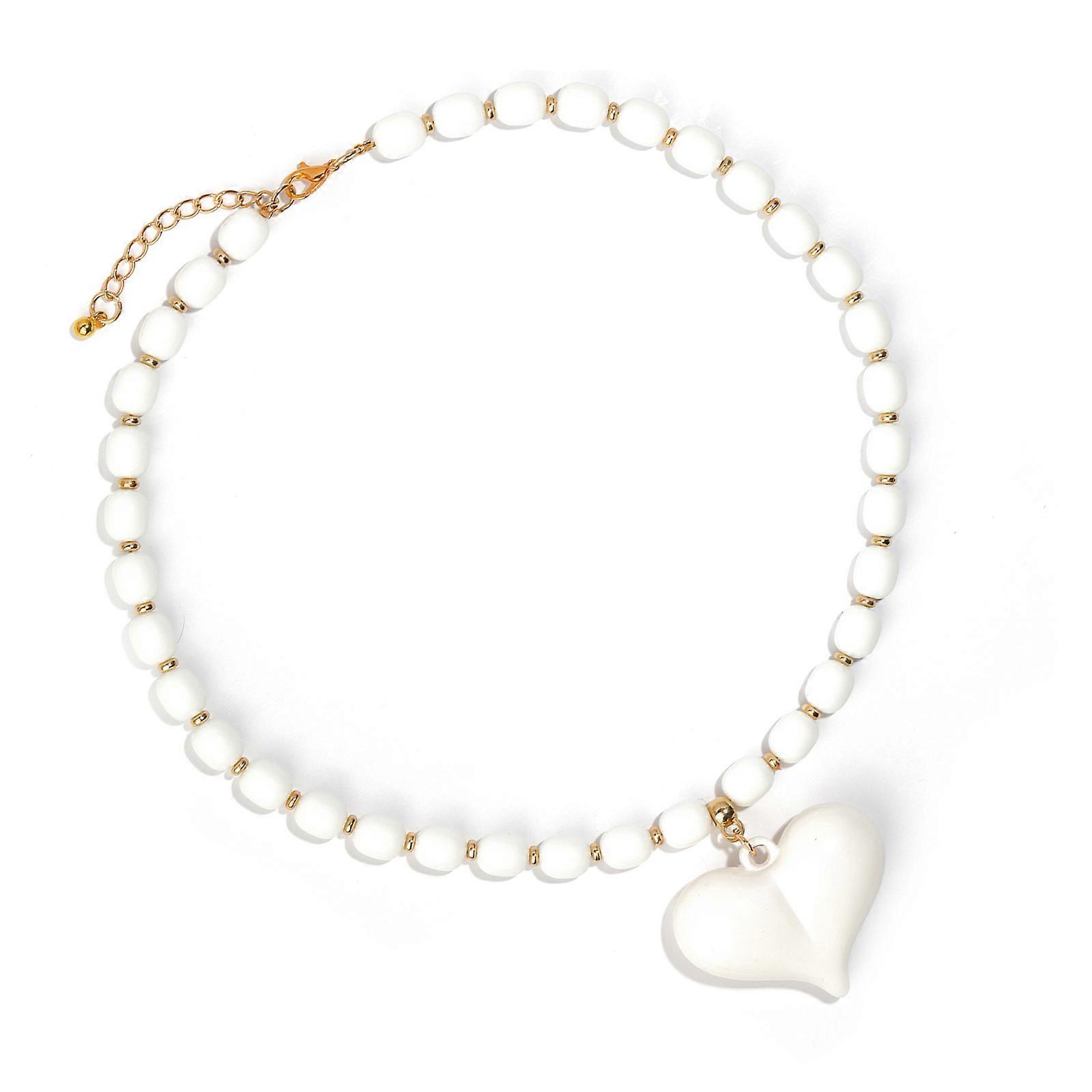 Unique Resin Heart Pendant Necklace With Drip Oil Craftsmanship for Party Date Night Jewelry Gift White