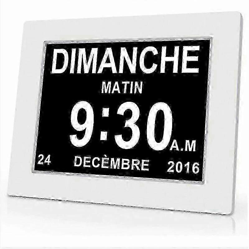 7 Inch Digital Clock with Date, Time & Calendar Function - Alzheimer's Reminder for Family Use - White