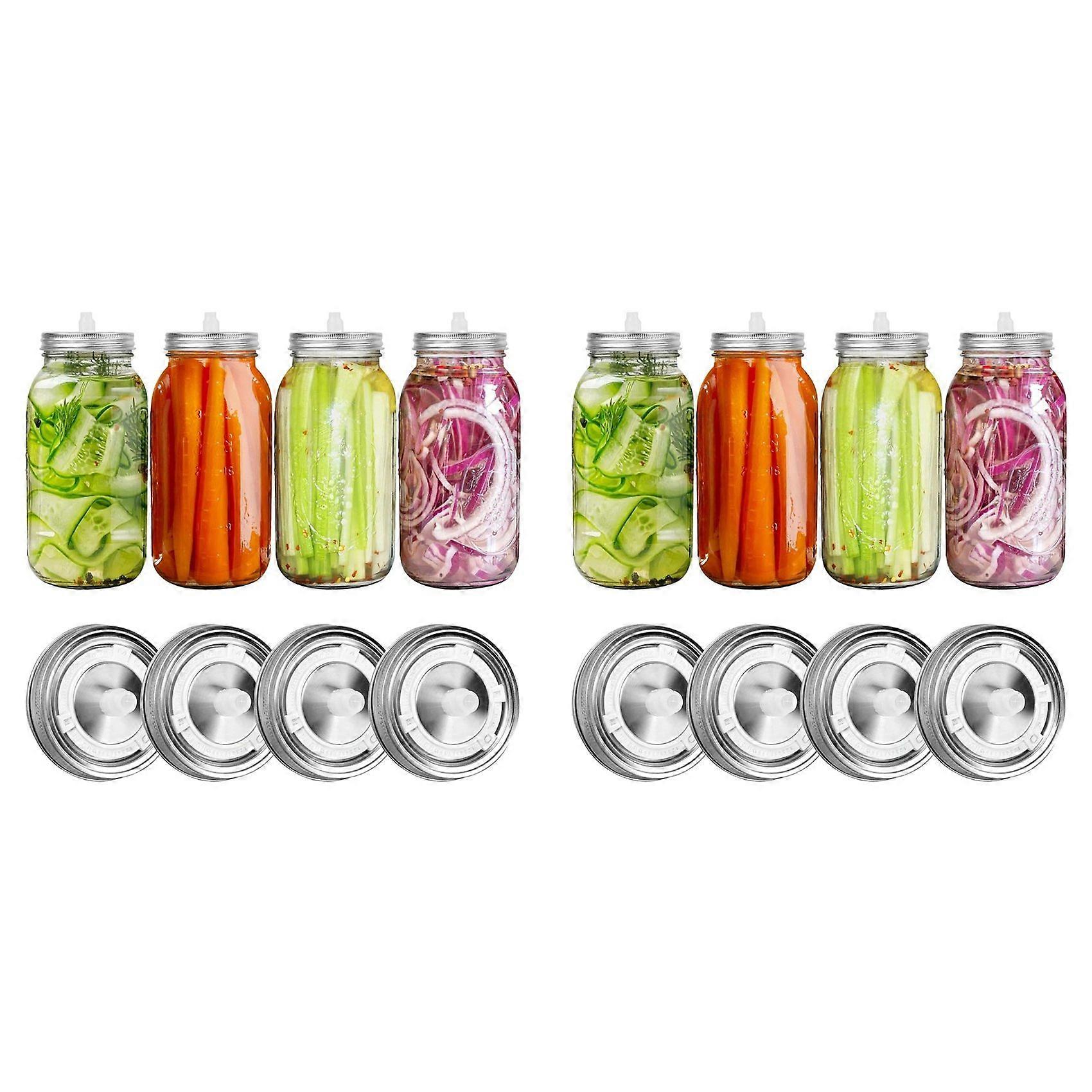 Fermentation Lids for Wide Mouth Mason Jars, 8 Stainless Steel Lids with Date Tracking, Starter Fermentation Kit