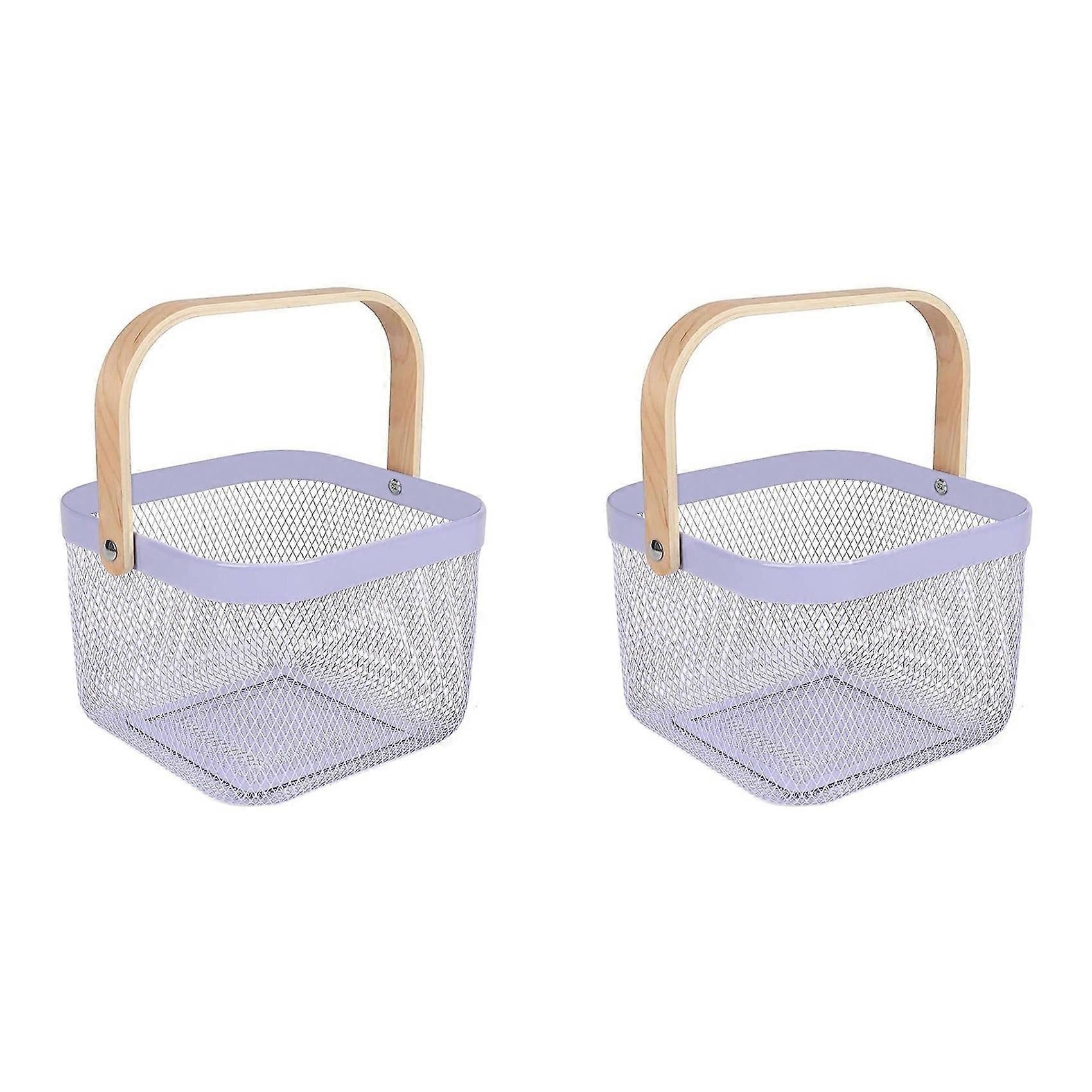 2X Metal Mesh Basket, Multi-Functional Hanging Kitchen Baskets Fruit Basket with Handle Purple