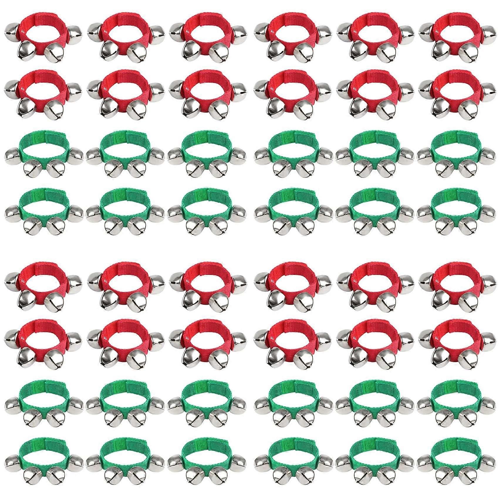 48 Pcs Wrist Band Bells Bracelets Jingle Bells Musical Ankle Bells Rhythm Instrument for Kids Christmas Party Favors-A