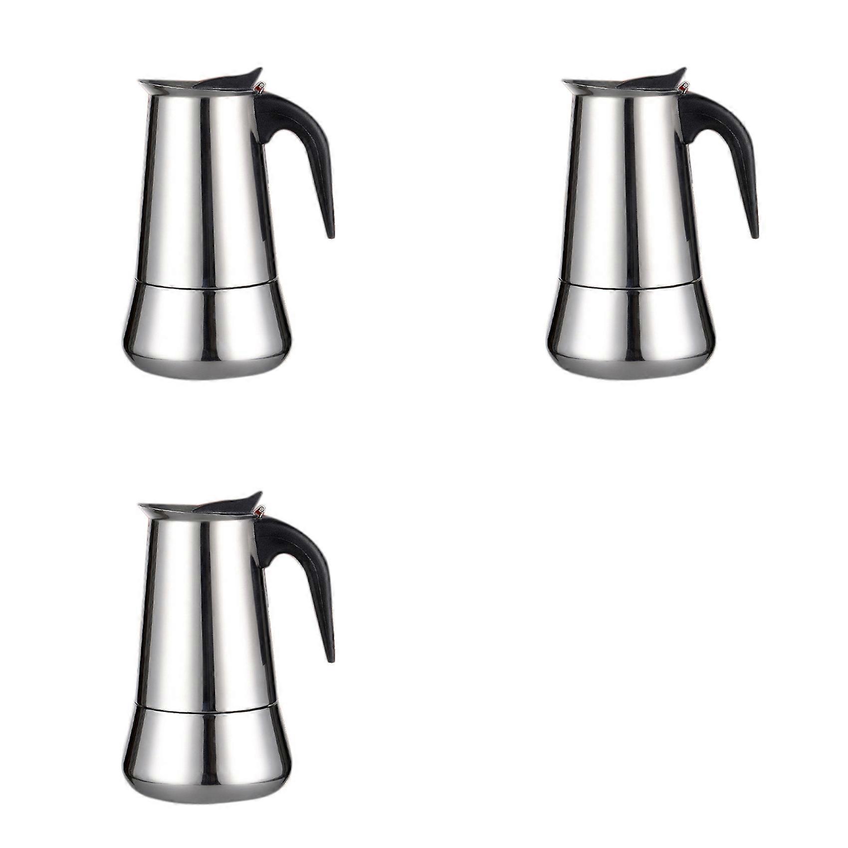 3X Stainless Steel Induction Stovetop Espresso Maker , Italian Style Coffee At Home with Moka Pot in Modern Chrome