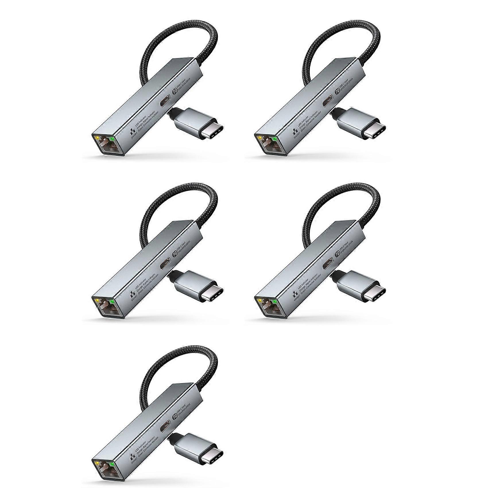 5X 2 in 1 USB C Network Card with PD 60W Fast Charging Port 1000Mbps Type C to Ethernet RJ45 Lan Gigabit Adapter for PC