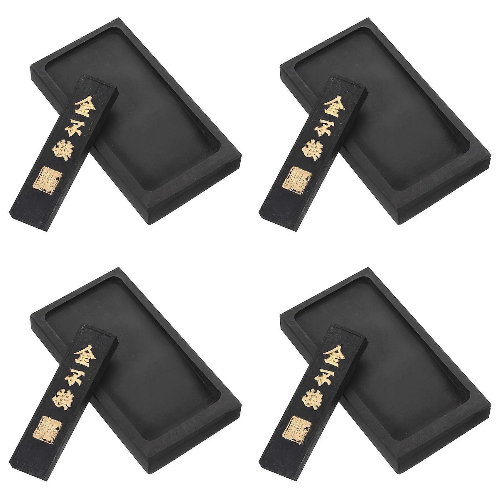 4 Set 4 Inch Chinese Calligraphy Ink Stone with Ink Stick, Rectangle Ink Stone Tray for Traditional Calligraphy Practice