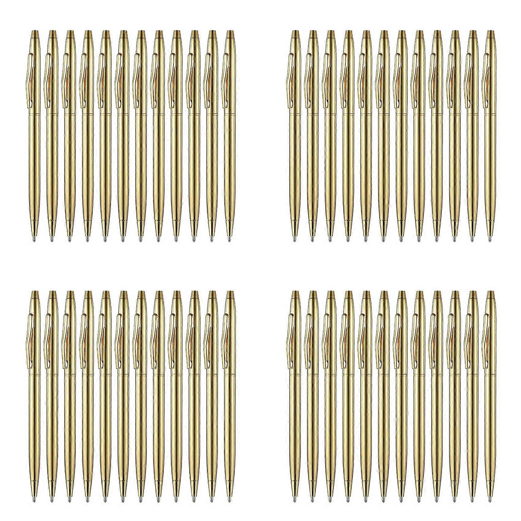 48 PCS Gold Slim Ballpoint Pens Black Ink 1 mm Medium Point Metallic Retractable Pens for Students Teachers Office