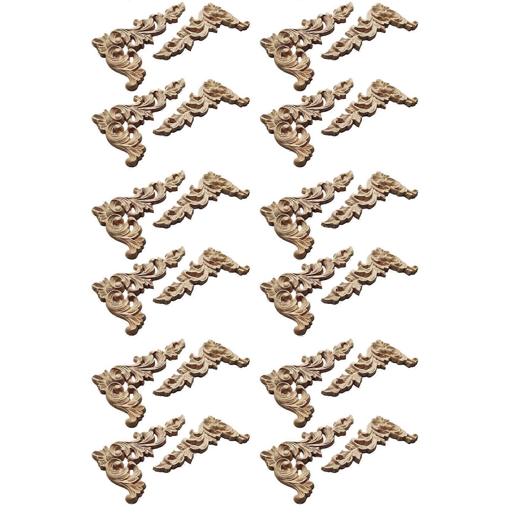 24Pcs Wood Carved Corner Onlay Applique Unpainted Frame Cupboard Cabinet Decal for Home Furniture Decoration A