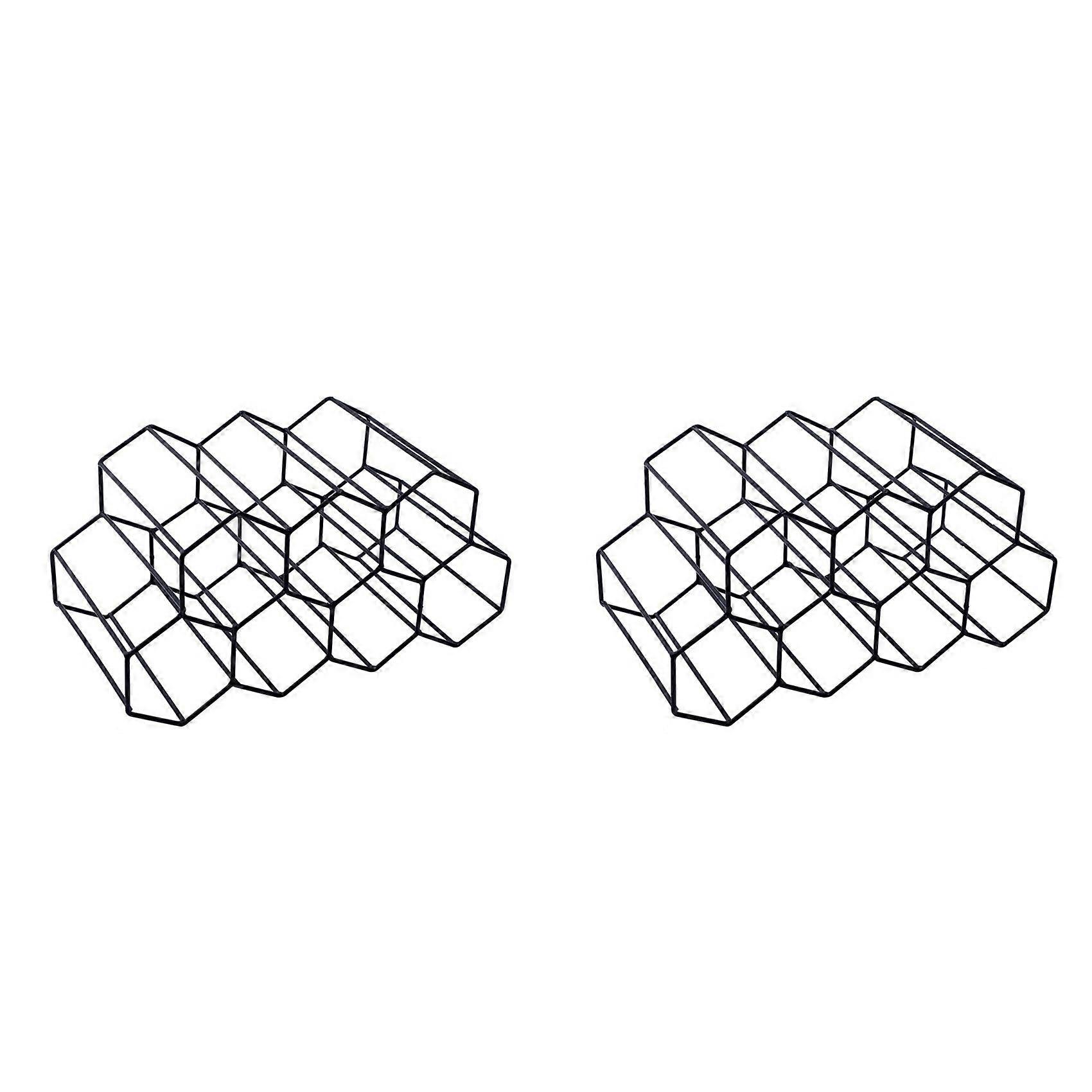 COMPACT, STURDY AND ATTRACTIVE: Our wine rack will work perfectly to display your wine collection in home kitchen, countertop, or bar table. Your wine bottles will stay safer and stylish with craftsmanship that hold up to 7 bottles and 2 champagne on top. SAVING SPACE: With geometric frame design, it efficiently creates a storage solution without taking much room and fit inside a cabinet or insert into a book case. Durable metal finish, anti-rust for long term use. EASY TO CLEAN: Just move the bottles, simply wipe down with a damp cloth to remove dust or any other filth and here you go it is back to its before beautiful look to store the bottles again. PACKAGE INCLUDES: The dimensions is L 13.7 x D 7.4 x H 6.8 inches (approximately), to hold the bottles firmly and the item weight about 580g keep it in a balanced position. GREAT perfect GIFT: Your wine lover friends would not be happier when receiving such a nice gift. The simple looking goes nicely with modern home décor. If you have any questions, you can contact us. Colour:Black Material:Metal Size:Length 35cm, Width 19cm, Height 17.5cm Package Contents: 2 x Wine Racks Countertop Wine Rack Only the above package content, other products are not included. Note: Light reflection and different displays may cause the color of the item in the picture a little different from the real thing. The measurement allowed error is +/- 1-3cm.