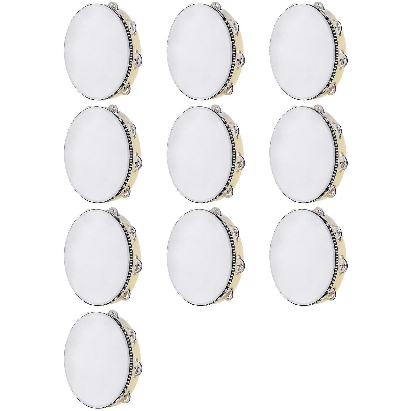 10X Tambourine for Adults 10 Inch Hand Held Drum Bell Birch Metal Jingles Percussion Gift Musical Educational Instrument