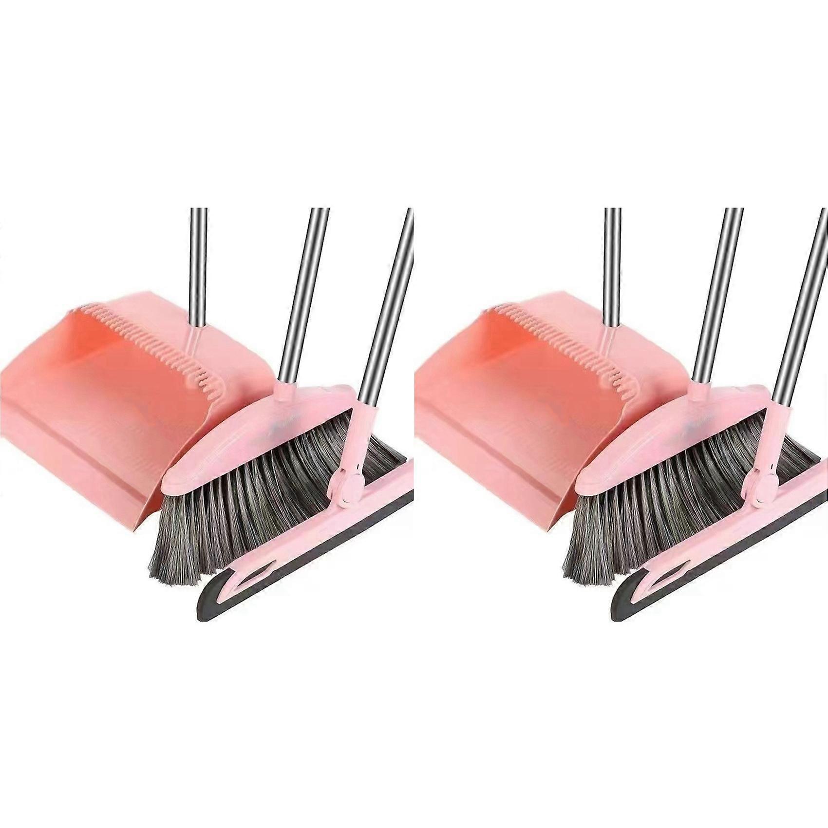2X Dustpan Broom Set Floor Wiper Household Cleaning Long Handle Cleaning Set for Lobby Household Kitchen Cleaning Pink