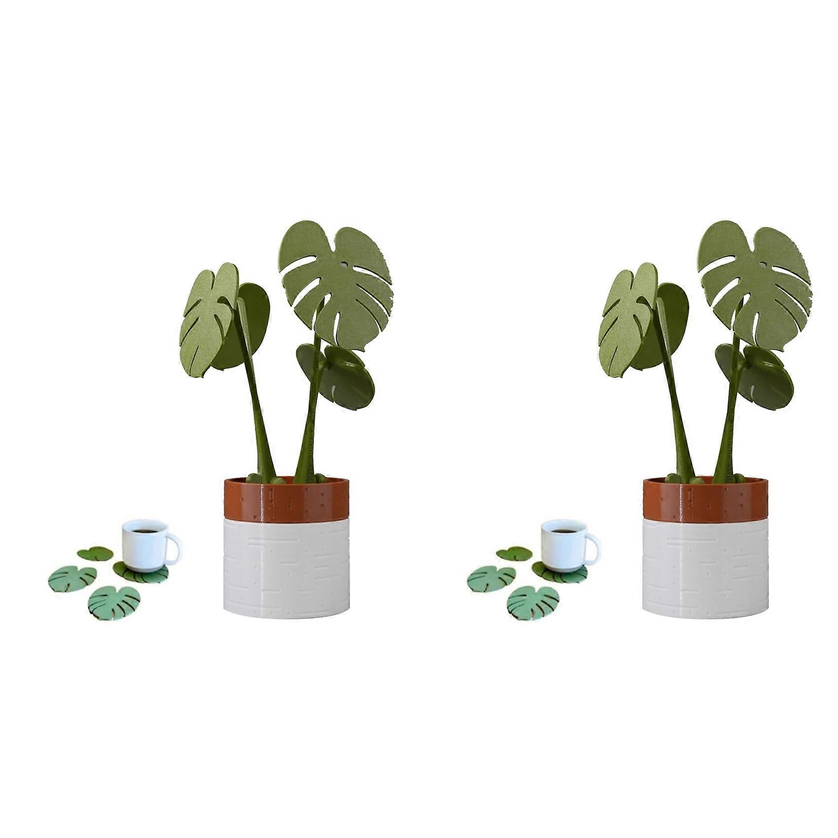 2 Set Monstera Plant Coasters Set 3D Printed,Waterproof&Anti-Scald Plant Coasters, 3D Printed Coasters Magnetically A