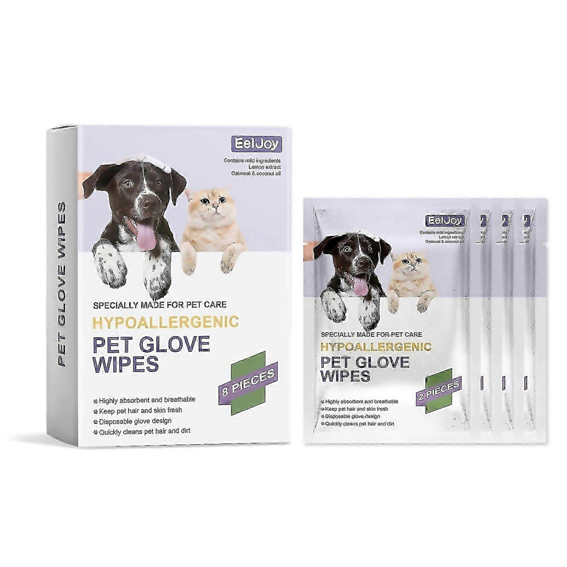 Fangrui Product Details Our Pet Cleaning And Care Gloves Contain Lemon Extract, Oat Extract, Coconut Oil. It Deeply Cleans Pet Hair, Ensuring No Residue Left, Allowing Pets To Enjoy Freshness And Comfort. A Gentle Touch Protects Pet's Skin And Hair, Gentle Cleansing While Keeping Pet's Hair Shining And Fresh. It's Easy To Use: Unpack, Remove The Disposable Pet Glove Wipes, And Place Them In Your Hands. Gently Wipe The Parts Of Your Pet's Body That Need To Be Cleaned. When The Cleaning Is Complete, Just Discard The Gloves. And It Can Easily Remove Hair Dirt Quickly, Is Hygienic And Efficient, Saving Time And Energy. Net Content: 8pcs Product Name: Pet Cleaning And Care Gloves Keywords: Cleaning Supplies Gross Weight: 149g Ingredients: Lemon Extract, Oat Extract, Coconut Oil Packaging Size: 12*3.2*17cm Product Size: 11.8*16.8cm Box Meter: 56*36*21.5cm Weight Of A Box: 7.9kg Shelf Life: 3 Years Storage Method: Please Store It In A Cool And Covered Area Crafted With Attention To Detail
