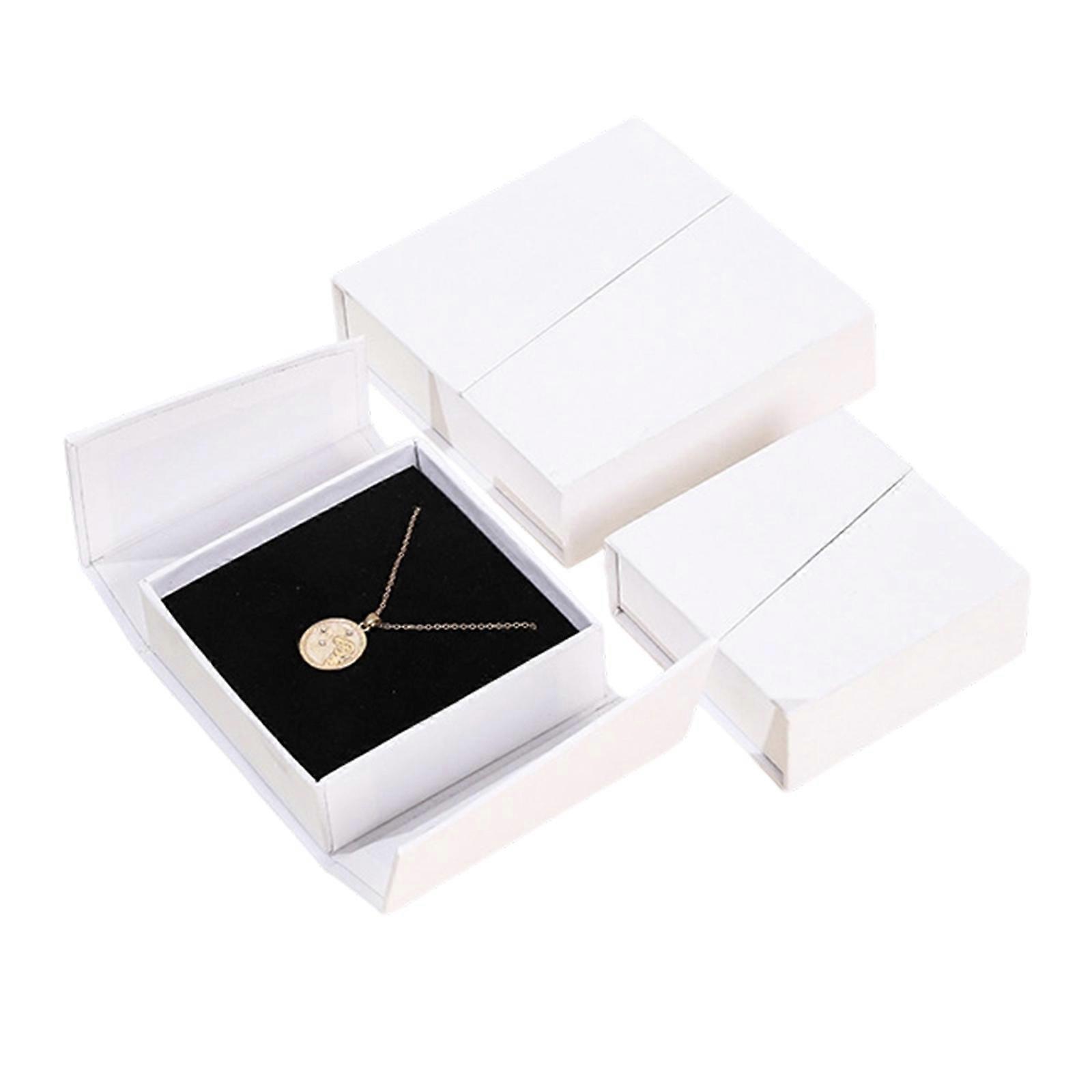 Easy Access Magnetic Jewelry Box Double Flip Designs Travel Friendly Organiser for Earring Necklace Rings White S