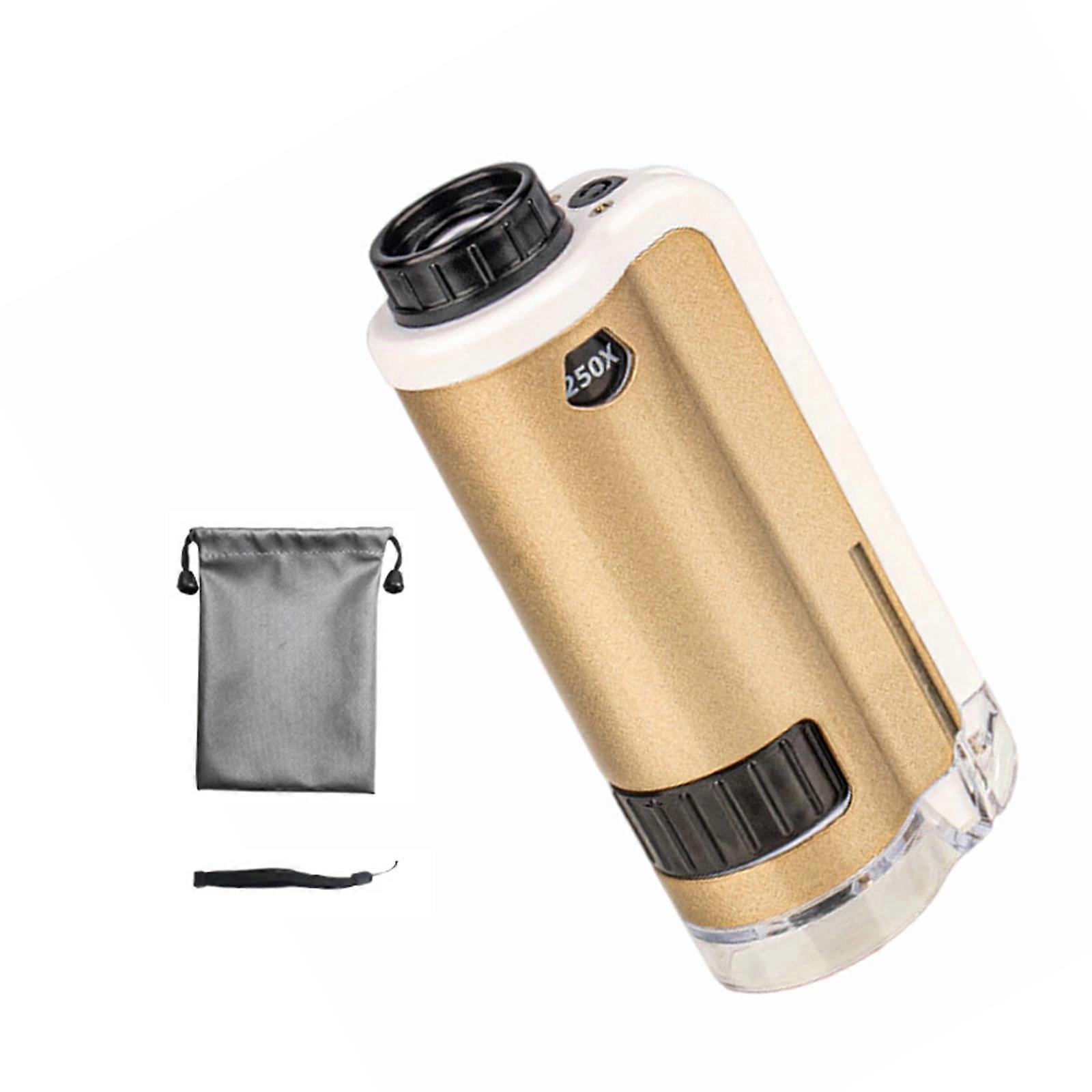Educational Science Toy Portable Microscope for Children Featuring 100X-250X Magnification LED Light for Learning Study Gold