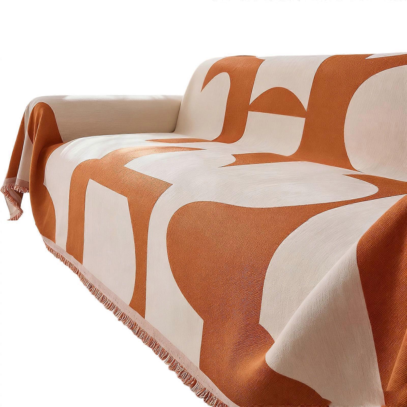Soft Chenilles Geometric Sofa Blanket Cover Universal Couch Slipcover with Tassels For Relaxation Machine Washable Fabric orange1 color