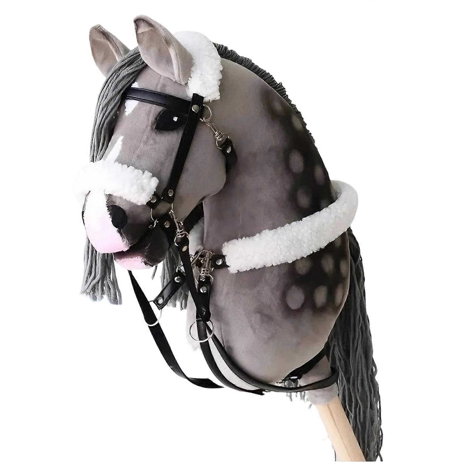 Adorable Plush Horse Head Stick Toy Animal Head Role Play Stick Easy Assembly Hobby Horse Racing Toy Gray