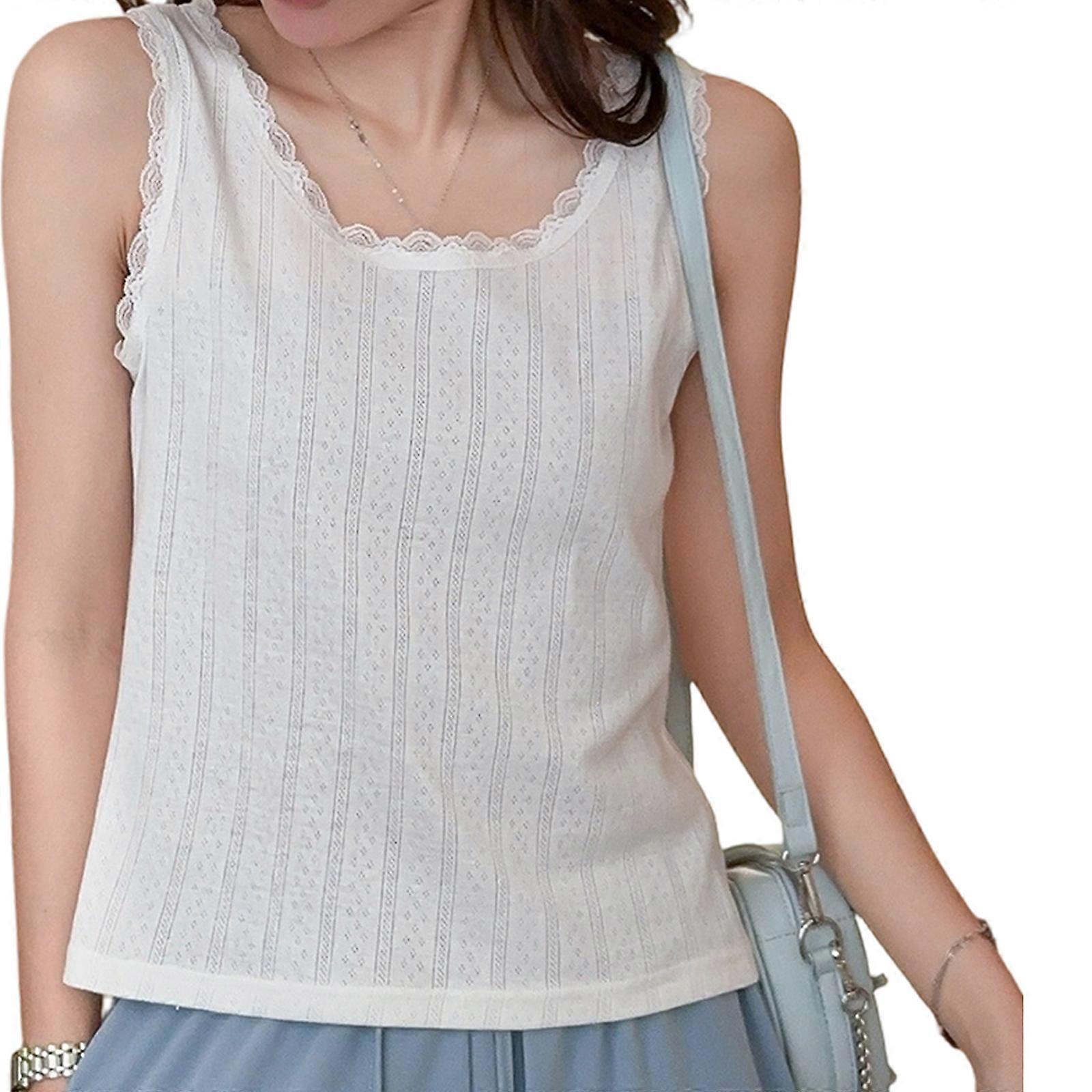 Men's Fashionable Lace Trim Vest with Jacquard Pattern Round Neck Elegant Solid Color Sleeveless Tank Top Undershirt Cream os