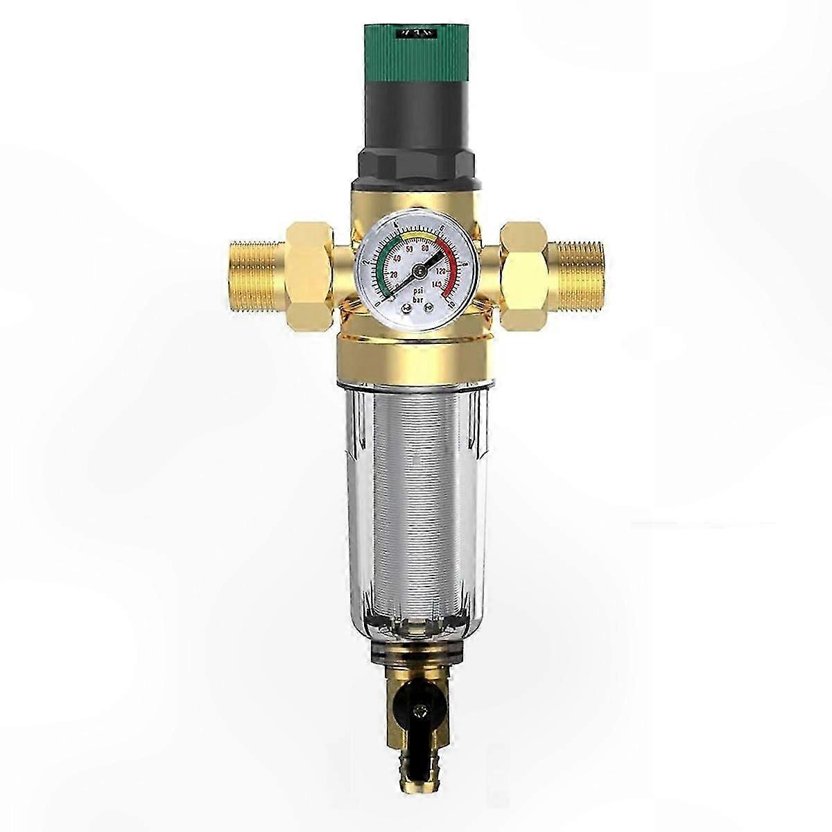 3/4 Inch Backwash Filter with Pressure Regulator, Gauge, and Reusable Housing Connection for Home Use