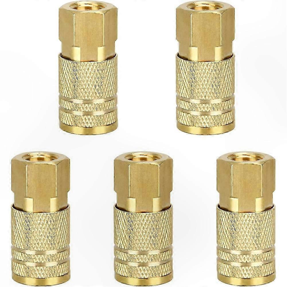 Brass Air Hose Fittings, 1/4" NPT Quick Connect Couplers, 5 Pack for Automotive and Home Use