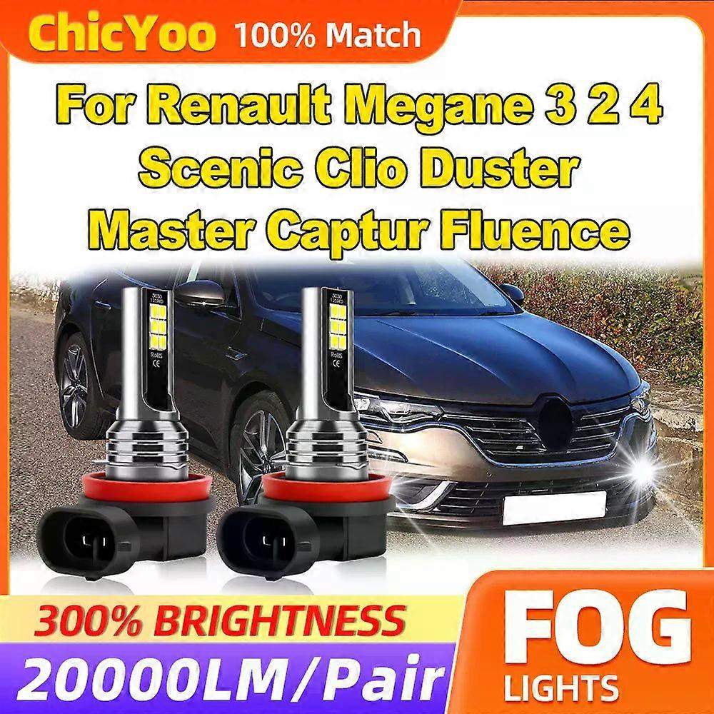 60W Fog Lights 20000LM H8 H9 H11 Fog Lamps 12V 6000K White For Renault Megane 3 2 4 Scenic Clio Duster Master Captur Fluence