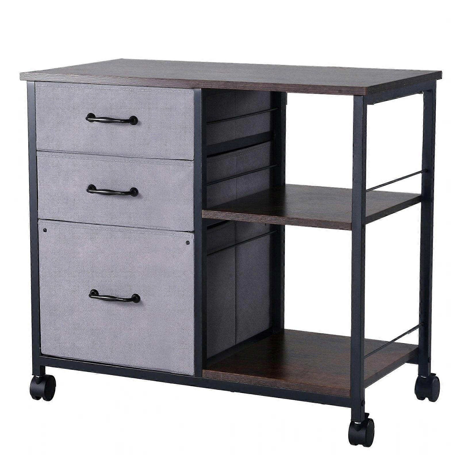 Vevor Mobile Metal File Cabinet With 3 Fabric Drawers And 2 Open Shelves Brown Filing Cabinets