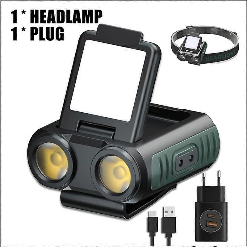 LED Cob Sensing Dual Light Source Light Rechargeable Long Endurance Headlamp Portable Outdoor Camping Hiking Lighting Flashlight