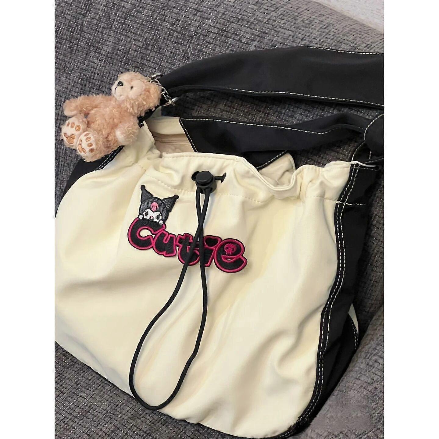 Kawaii Sanrio Kuromi Crossbody Bag Cute Anime Solid Color Canvas Bag Cartoon Large Capacity Travel Bag Holiday Gift