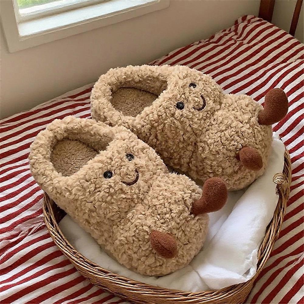 Fun Peanut Warm Slippers for Women, Winter Plush Indoor House Shoes, Cute and Comfortable