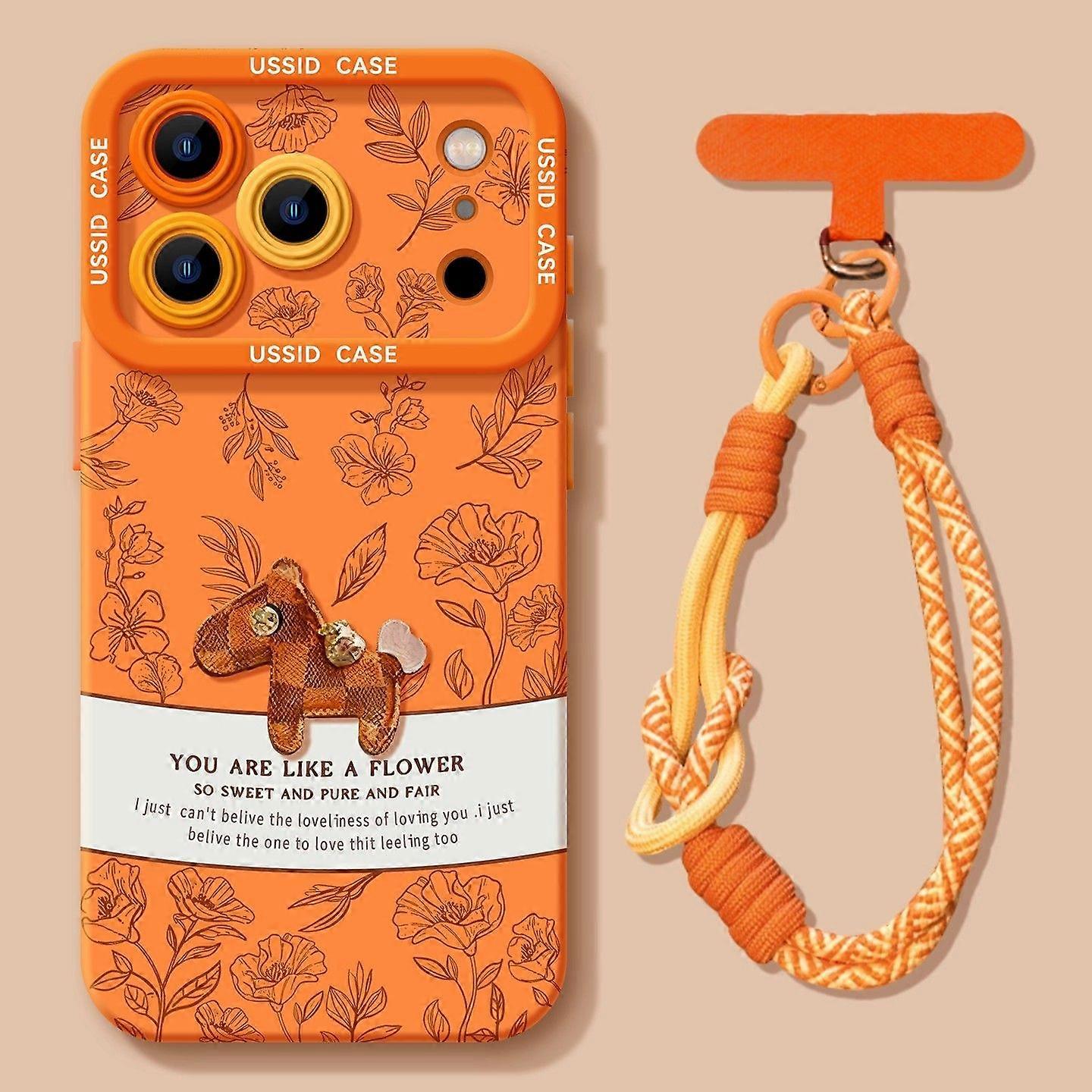New Year Horse Phone Case for iPhone 17 Pro Max 16 15 14 13 12 Liquid Silicone Soft Case Anti-Scratch with Lanyard Starry Orange Pony Design