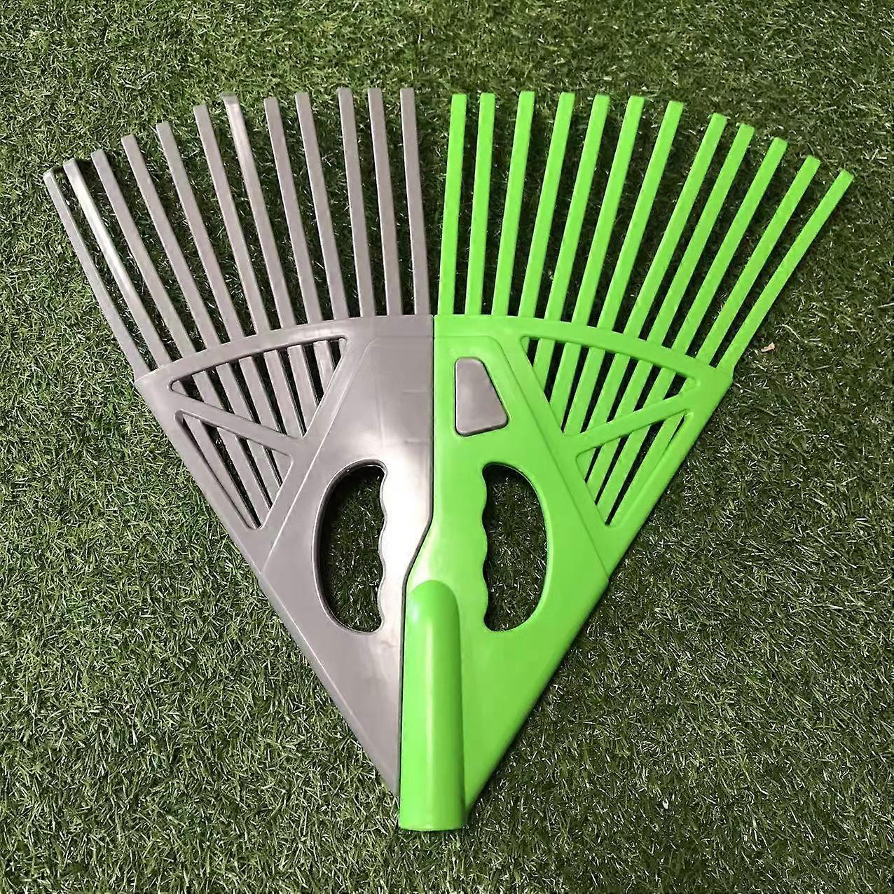 Garden Tool 2-in-1 Handheld Extendable Leaf Rake Grabber, Long Handle Lawn Leaf Collector for Yard Garden, Gray-Green