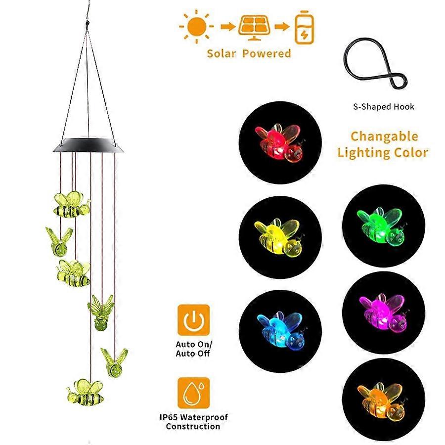 LED Wind Chime Light Colorful Bee Snowflake Wind Bell Solar Lamp for Bedroom Garden Decoration Party Atmosphere Decoration Light