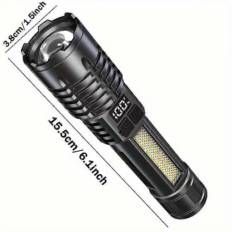 Portable Rechargeable High Power LED Flashlights With Display Screen Zoom Tactical Torch Lamp with Emergency Side Lights Lantern