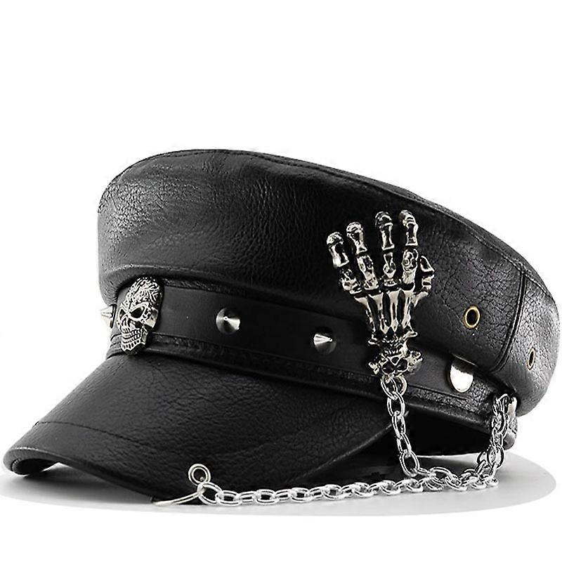 Unisex Casual Leopard Print Beret Hat with Studs and PU Leather Hats Retro Street Style Wide Brim Flat Top Navy Cap