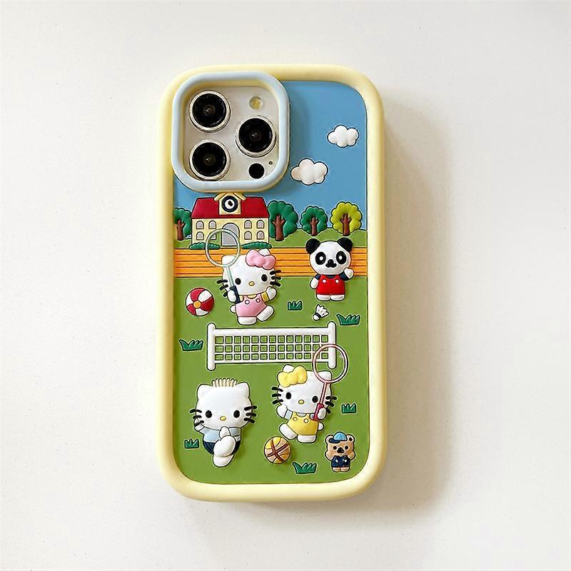 Kawaii HelloKitty Badminton Silicone Phone Case for IPhone 16 15 14 13 12 11 Pro Max Plus Anime Cases Shockproof Soft Back Cover