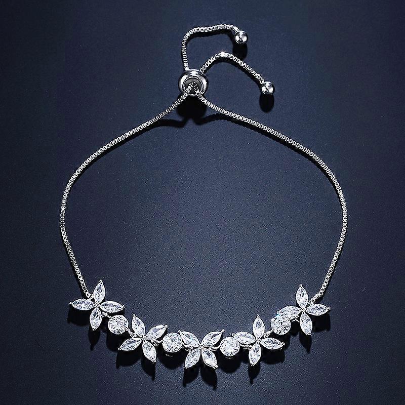 Classic Shiny Clear Zircon Flowers Adjcomtable Charm Bracelets for Women Sliver Color Fashion Wedding Jewelry
