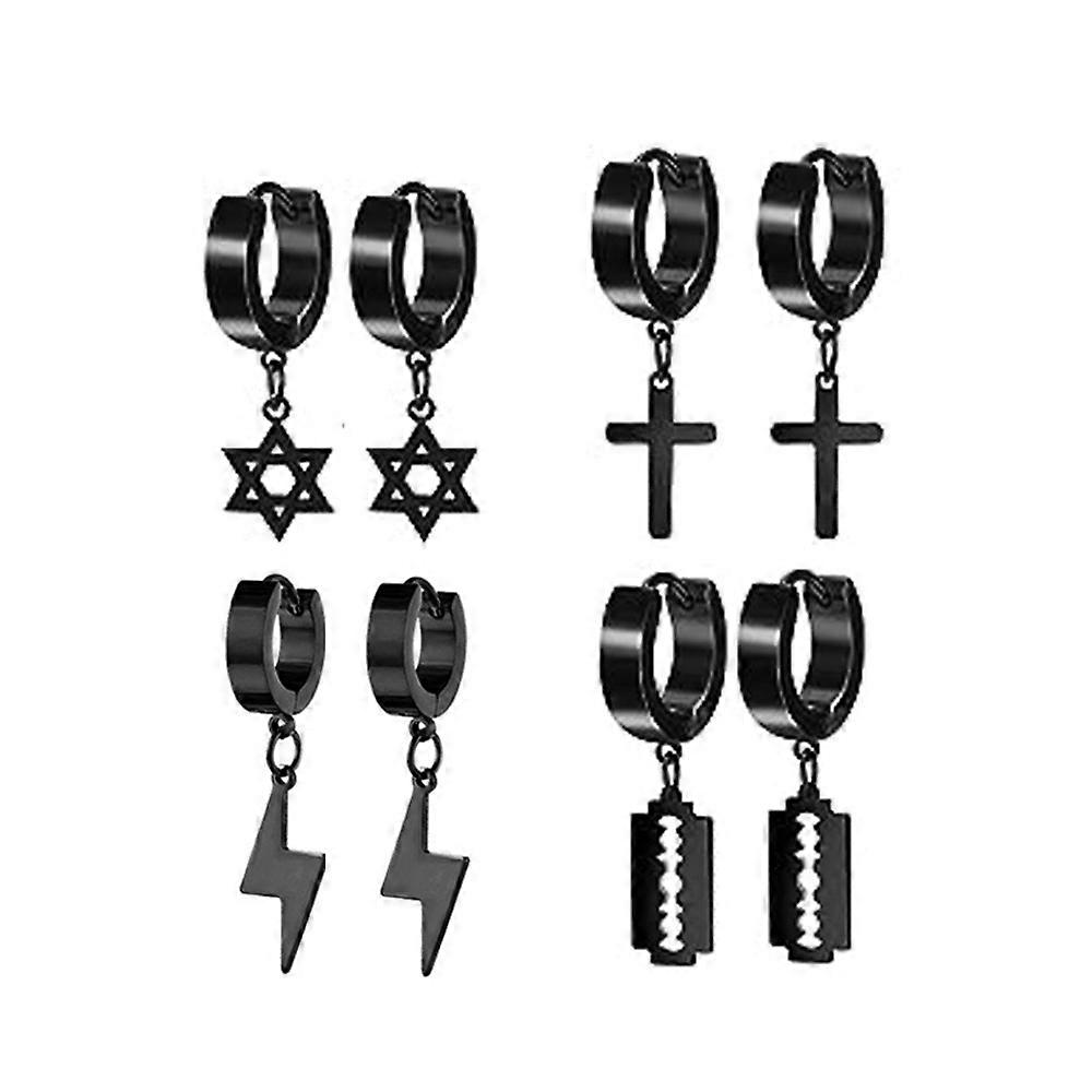 22 Pairs Stainless Steel Black Stud Earrings For Men, Cross Cone Pendant Hoop Earrings, Party Birthday Gift