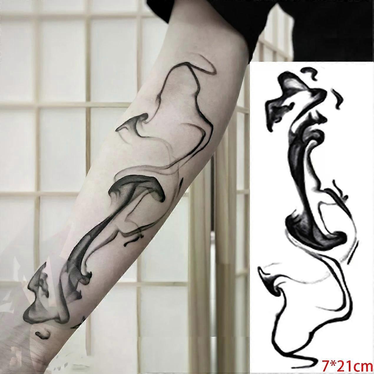 Waterproof Temporary Tattoo Sticker Black Abstract Design Chinese Water and Ink Fake Tatto Flash Tatoo Body Art for Women Men
