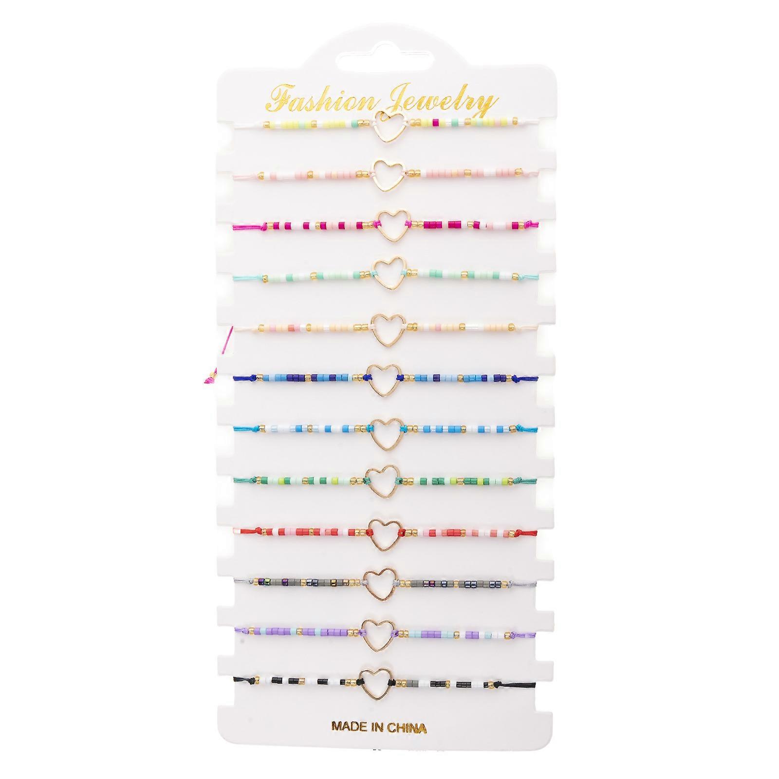 12pcs/set Handmade Adjcomtable Crystal Seed Beads Hand Jewelry Hollow Heart Charm Bracelet Kit For Women And Grils