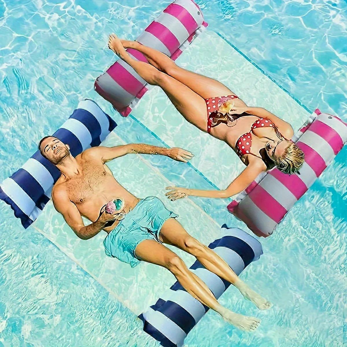 2Pcs Pool Loungers, Inflatable Floating Beds, Foldable Striped Swimming Buoys, Pool Parties, Beach Accessories