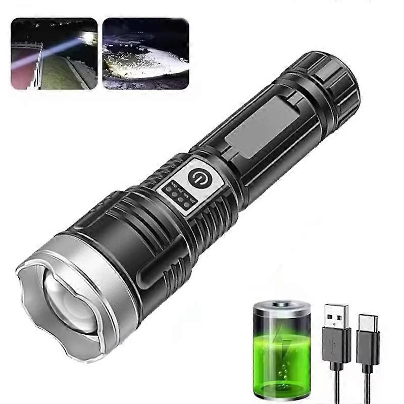 9000LM Powerful LED Flashlight Built-in Battery USB Rechargeable Zoom Torch With Power Display Outdoor Tactical Flashlights