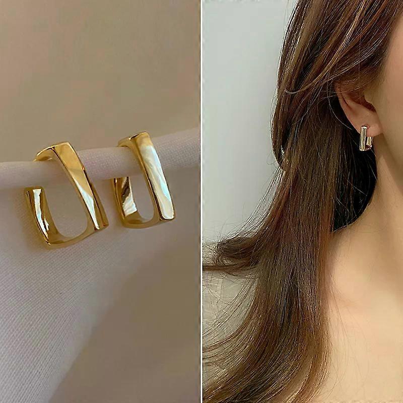 Gold Color Geometric Square Stud Earrings For Women Classic Minimalist Opening Earrings Party Wedding Ear Jewelry Gifts