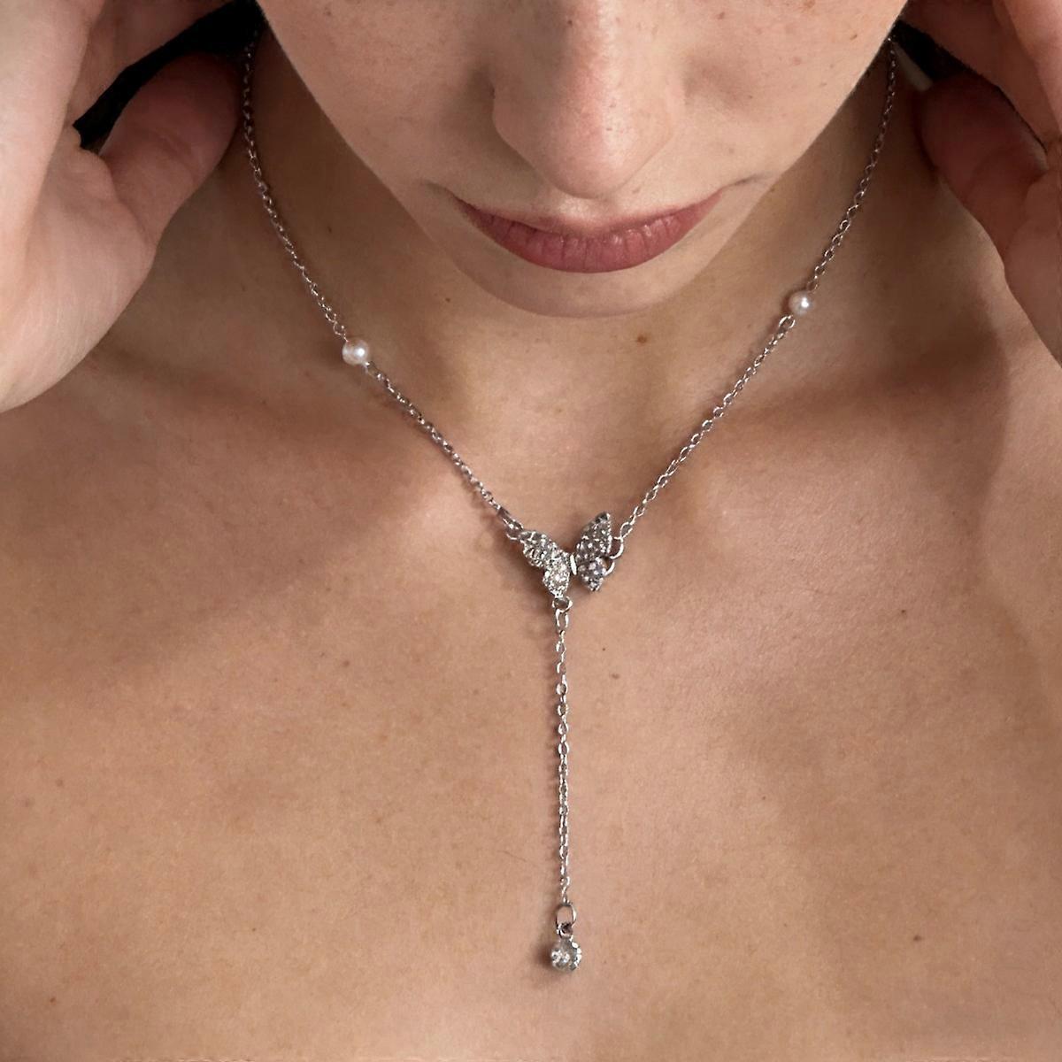 Y2K Butterfly Zircon Pearl Clavicle Chain Necklace for Women Girl Fine Jewelry Creative Simple Cute Fashion Anti-allergy Pendant