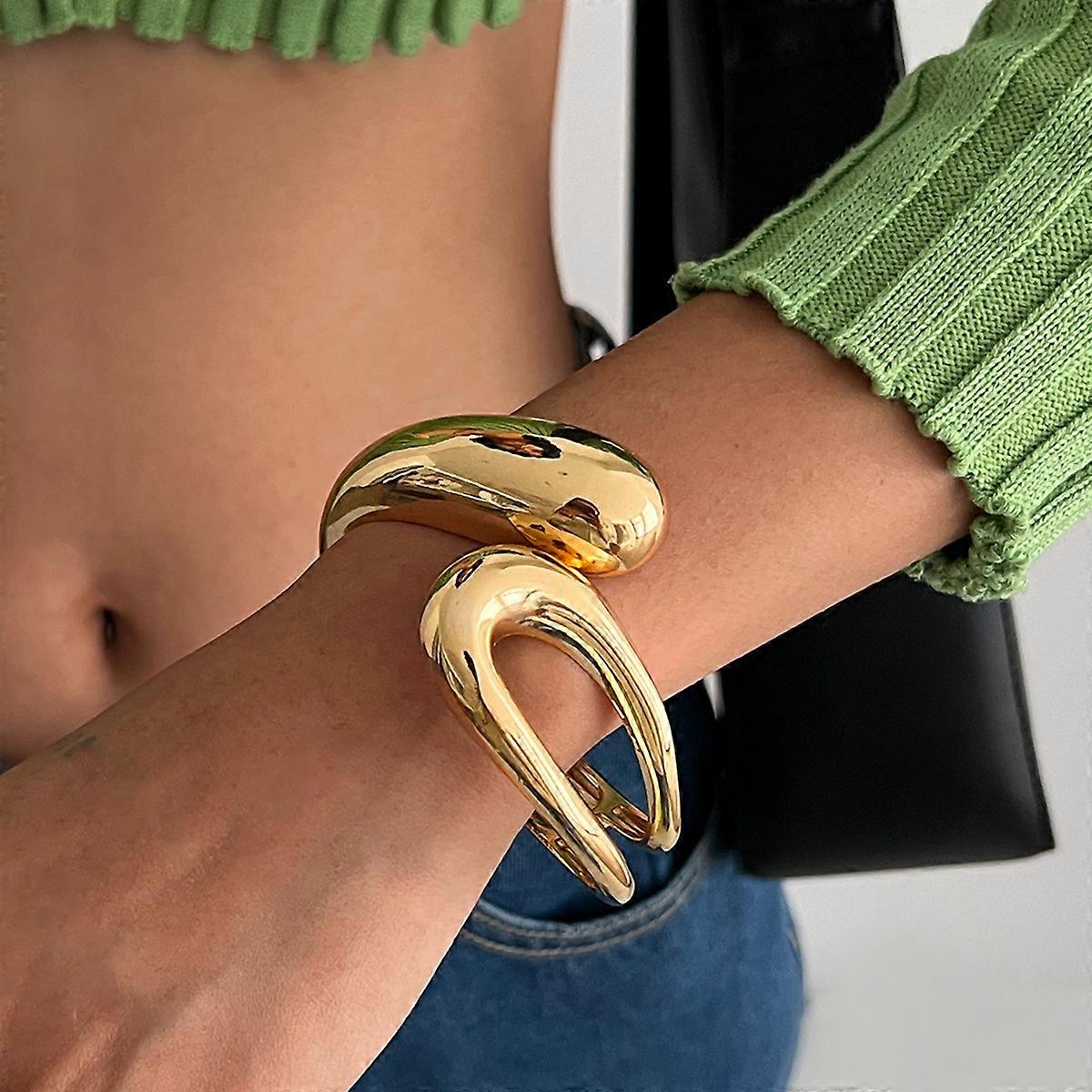 Ingemark Creative Goth Water Drop Hollow Out Spring Bangles Women Punk Gold Color Open Cuff Twisted Bracelets Grunge Jewelry Men