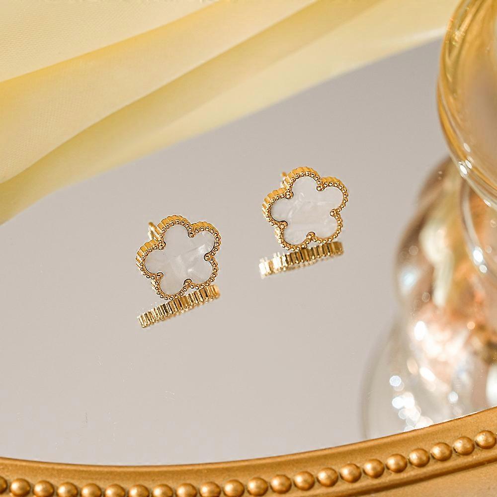 Simple Fashion Elegant Stainless steel 18K gold-plated Fiver-leaf Clover Earrings light luxury niche senior sense of five flower