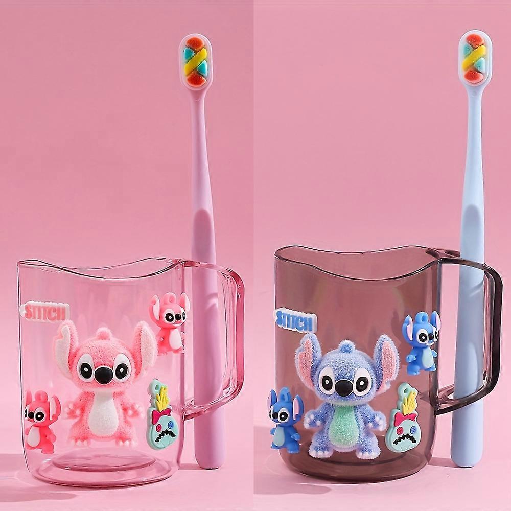 Couples Stitch Themed Plastic Toothbrcomh & Rinse Cups, Ideal for Families and Dorms, Bathroom Accessories|Playful Design|Durable